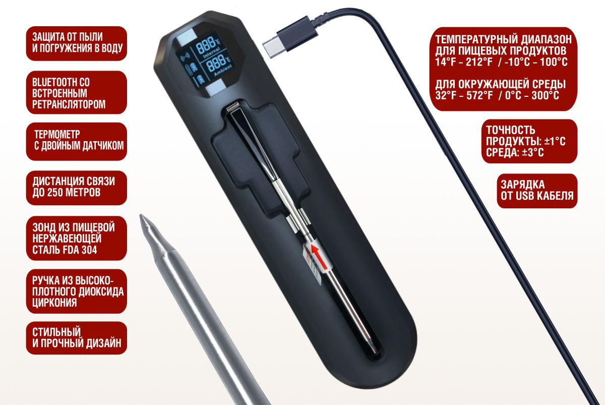 Читать все статьиЦифровой термометр Model 5, беспроводной, BT, с зарядным кейсом